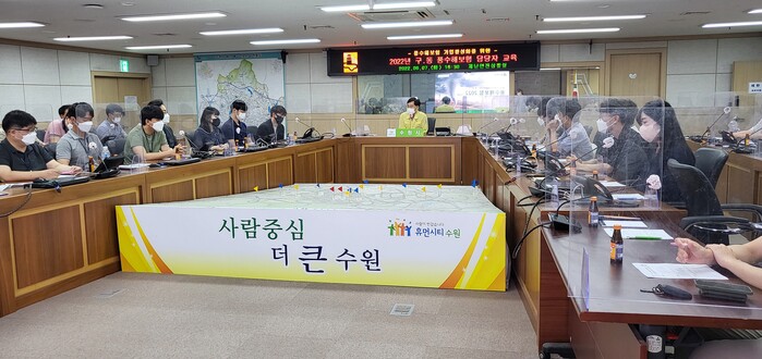 수원시가 7일 시청 재난안전상황실에서 ‘2022년 풍수해보험 담당자 교육’을 열었다.