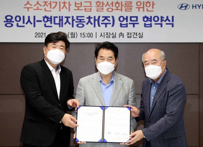 용인시는 26일 현대자동차㈜, 용인테크노밸리 입주기업인협의회와 수소차 보급 활성화를 위한 업무협약을 체결했다.