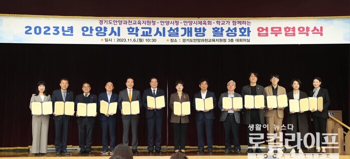 [안양=로컬라이프] 송준형 기자 = 안양시는 안양과천교육지원청, 안양시체육회, 관내 학교들과 함께 ‘2023년 안양시 학교시설개방 활성화 업무협약’을 체결했다.