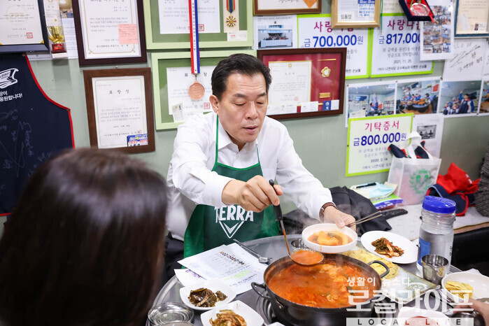[수원=로컬라이프] 송준형 기자 = 이재준 수원특례시장은 6일, 직원들과 권선시장의 한 식당에서 식사하며 소통의 시간을 가졌다.
