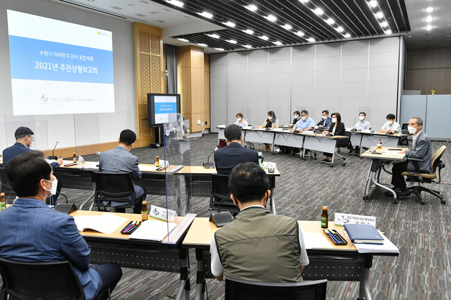 수원시는 6일 시청 중회의실에서 ‘2021~2025 수원시 미세먼지 관리 종합계획 2021년 상반기 추진상황보고회’를 열고, 미세먼지 저감 사업 추진상황을 점검했다.