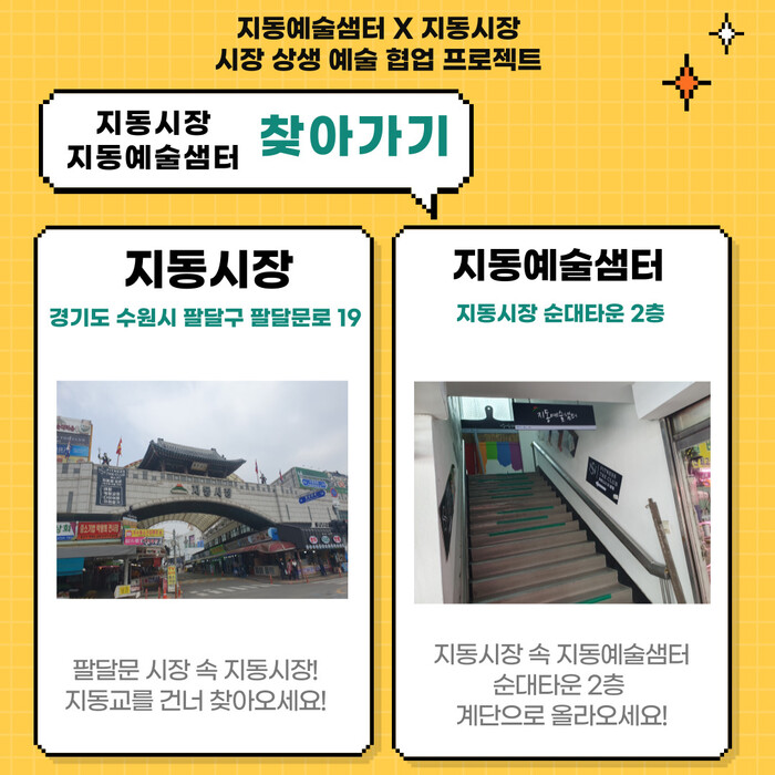 ‘지동예술샘터’는 전통시장과 예술작가의 상생을 위한 수원문화재단의 예술작가 창작지원사업(작가 레지던시)이다.