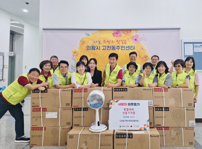 의왕시 고천동 지역사회보장협의체(위원장 손성기)는 지난 14일 폭염을 대비해 홀로 사시는 어르신 등 관내 취약계층 가구에 서큘레이터 선풍기 15대를 지원했다.