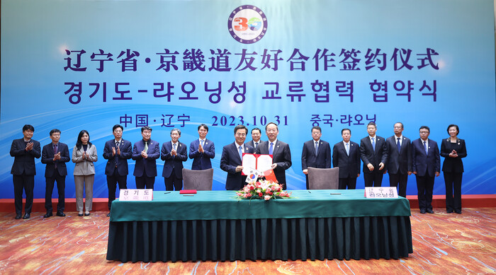김동연 경기도지사는 지난 31일 저녁 랴오닝성인민정부 영빈관에서 하오펑(郝鵬) 랴오닝성 당서기, 리러청(李樂成) 랴오닝성 성장을 만나 경기도-랴오닝성 자매결연 30주년 기념식을 갖고 이런 내용을 담은 ‘자매결연 30주년 공동선언’에 서명했다.