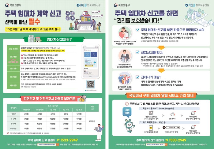 제도 시행 초기 혼란을 줄이기 위해 4년간의 계도기간이 운영됐으며, 이 기간에는 과태료가 면제됐다. 하지만 계도기간이 종료되는 6월 1일부터 체결되는 임대차 계약에 대해 신고 지연 또는 미이행 시에는 과태료가 부과된다. 이에 따라 주택임대차 계약을 체결한 경우, 계약 체결일로부터 30일 이내에 임대인 또는 임차인이 주소지 행정복지센터를 방문하거나, ‘부동산거래관리시스템’을 통해 온라인 또는 모바일로 신고해야 한다.