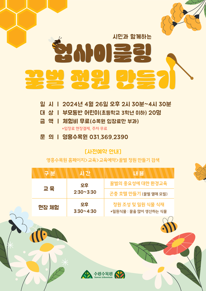 수원시 영흥수목원이 ‘시민과 함께하는 업사이클링 꿀벌정원 만들기’ 참가자를’ 4월 25일까지 모집한다.