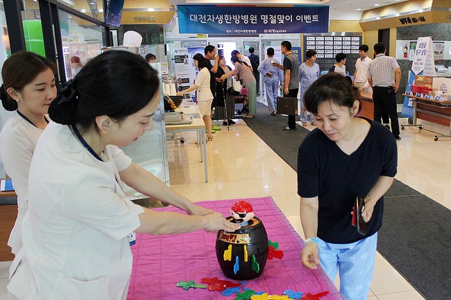 <사진/ 대전자생한방병원 환자들이 추석 맞이 이벤트에 참가하고 있다.>