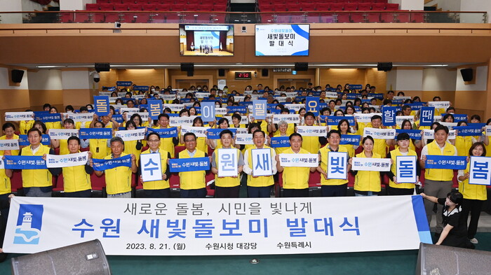 수원시는 21일 시청 대강당에서 ‘새빛돌보미’ 발대식을 열었다. 발대식은 새빛돌보미 대표의 선서, 이재준 수원특례시장의 인사말 등으로 진행됐다.