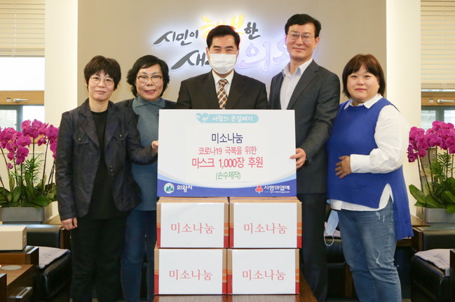 지난 2일, 봉사단체 미소나눔(회장 오문경)에서 손수 제작한 마스크 1,000매를 관내 취약계층에 전달해 달라며 의왕시에 기탁했다.