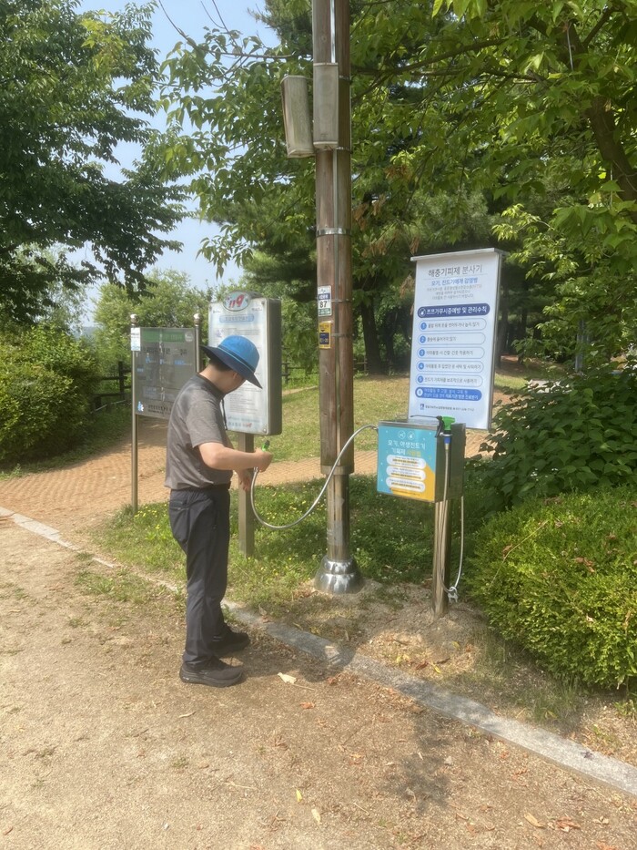 수원시 팔달구보건소가 모기·진드기 등 해충으로 인한 감염병을 예방하기 위해 도심공원, 등산로 등에 해충기피제분사기를 설치·운영한다.
