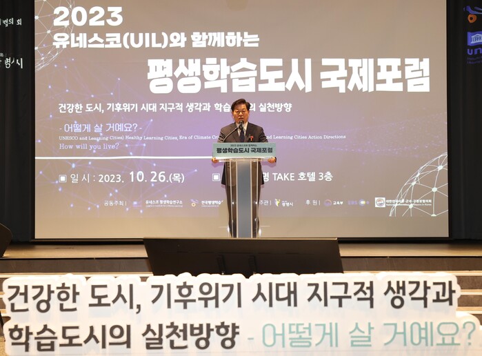 전도협과 유네스코(UIL)는 지난 26일 광명 테이크 호텔에서 ‘건강한 도시, 기후위기 시대 지구적 생각과 학습도시의 실천방향-어떻게 살 거예요?’를 주제로‘2023 유네스코(UIL)와 함께하는 평생학습도시 국제포럼’을 개최했다.