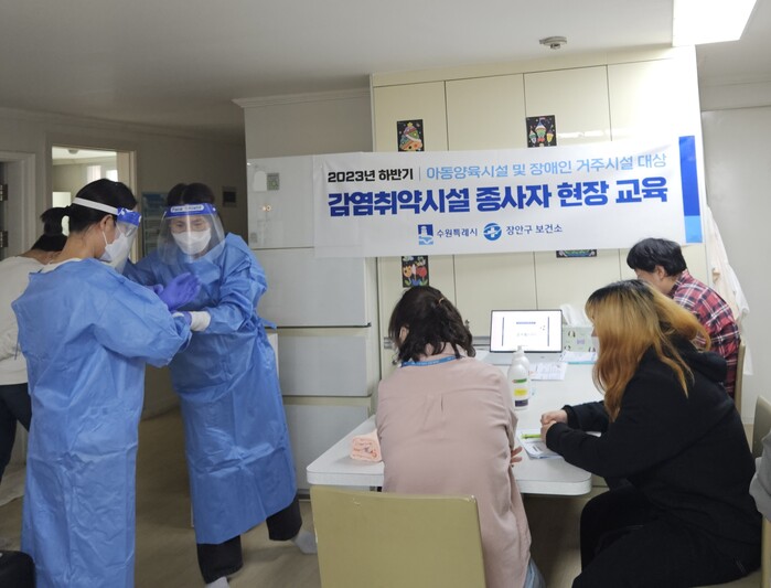 장안구보건소는 시설 관계자들이 감염병 발생 대응 체계를 확립해 시설 내 감염병 확산을 방지하고 방역관리 환경을 조성하는 것을 돕기 위해 현장 교육을 진행하게 됐다.