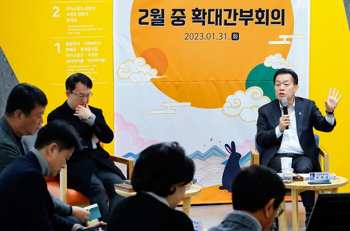이재준 시장은 1월 31일 광교복합체육센터 2층 로비에서 열린 ‘2월 중 확대간부회의’에서 “수원시의 재정자립도·재정자주도는 지속해서 하락하고 있고, 경제성장률은 2020년 기준 마이너스 10.8%에 이르고 있다”며 “좋은 기업을 유치해 세수를 확보하고, 양질의 일자리를 창출하면 침체한 지역경제를 활성화할 수 있다”고 말했다.