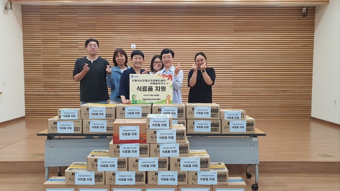수원시휴먼서비스센터가 “정신건강과 경제적으로 취약한 홀몸 어르신의 일상생활을 지원해달라“며 200만 원 상당의 식료품을 14일 수원시 노인정신건강복지센터에 전달했다.