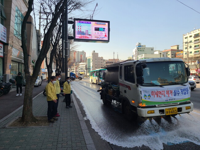 사진/기후에너지과-도로재비산 제거 살수차 운영(사진제공=성남시)