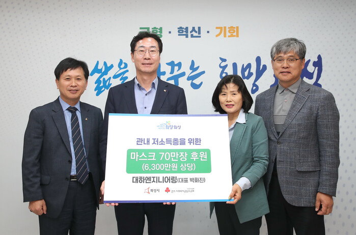 대하엔지니어링이 26일 화성시 취약계층을 위해 6천300만 원 상당의 마스크 70만 장을 후원했다.