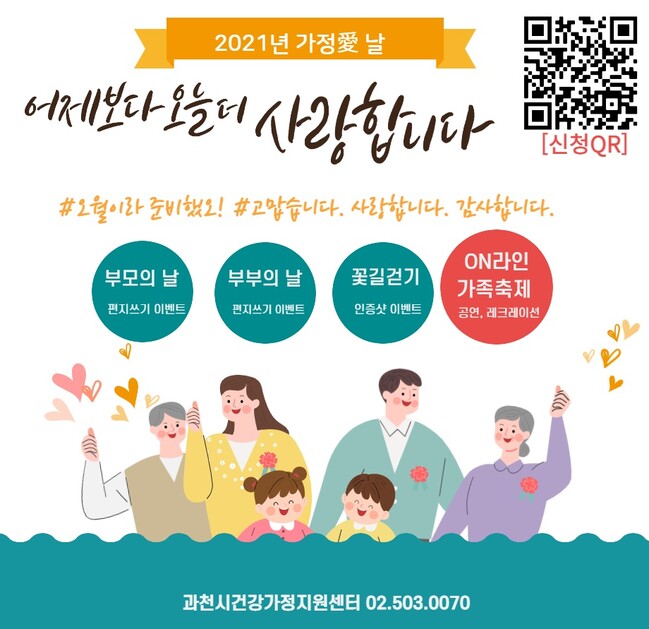 과천시 건강가정지원센터는 가정의 달을 맞아 29일 오후 2시에 제9회 ‘ON라인 가족축제’를 개최한다.