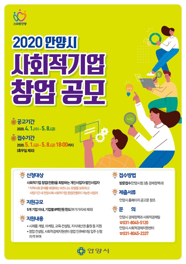 [안양=로컬라이프] 송준형 기자 = 안양시(시장 최대호)가 2020년도 사회적 기업 창업을 공모한다.