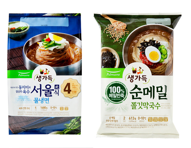 풀무원식품(대표 박남주)은 생가득 ‘서울식 물냉면’(4인/7,400원)과 생가득 ‘순메밀 쫄깃막국수’(2인/6,200원)를 출시했다고 16일 밝혔다.