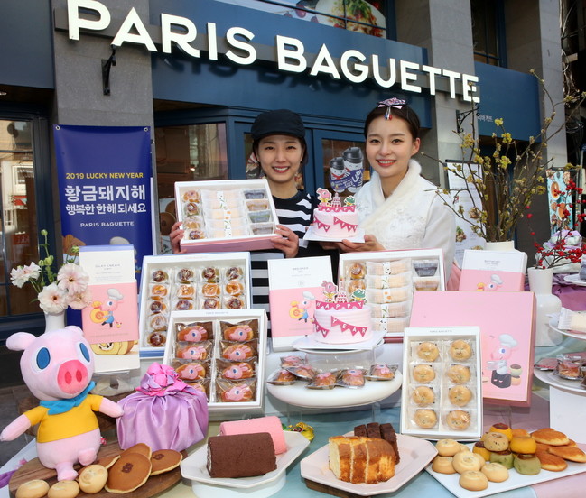 파리바게뜨는 28일(월) 서울 종로구 파리바게뜨 카페대학로점에서 황금돼지의 해를 맞아 돼지 캐릭터 데이지가 주인공인 ‘굴리굴리 프렌즈’와 협업한 설 선물을 소개하는 사진행사를 가졌다.