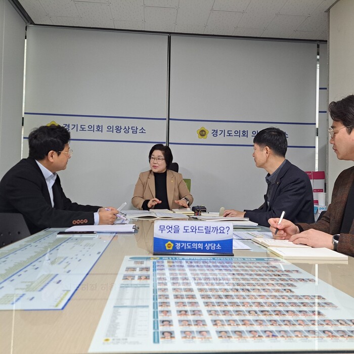 경기도의회 김옥순 의원(더불어민주당, 비례)은 19일 도의회 의왕상담소에서 경기도 시장상권진흥원 대외협력관 3명과 경기도 소상공인 환경개선 사업 관련 정담회를 가졌다.