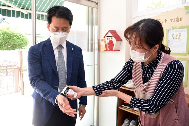 이번 현장방문은 관내 380개소 어린이집의 방역 수칙 준수실태를 확인하고, 감염병이 확산되고 있는 어려운 상황에서도 아동보육에 애쓰며, 코로나19 선제검사 및 백신접종에 적극 협조한 2천900여 명의 보육교직원들을 격려하기 위해 이루어졌다.