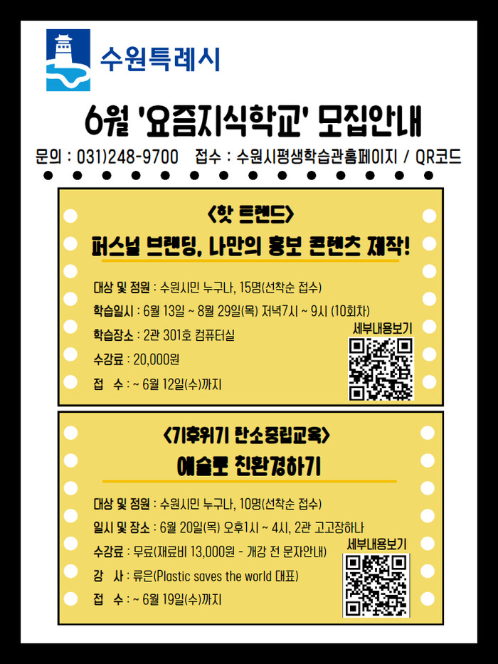 수원시평생학습관이 6월 ‘요즘지식학교’ 수강생을 모집한다.