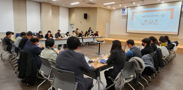사진/청소년 유해환경 개선 소통간담회 참석자들이 토론하고 있다.(사진제공=수원시)