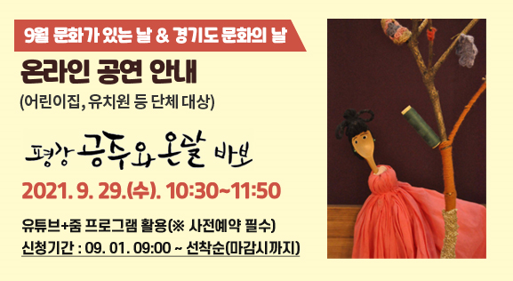 공연 영상은 9월 29일 오전 10시 30분 어린이 연극 전문 예술단체인 극단 ‘이야기꾼의 책공연’ 유튜브 채널(https://youtu.be/a8xX4dGo-M8)에서 볼 수 있다.