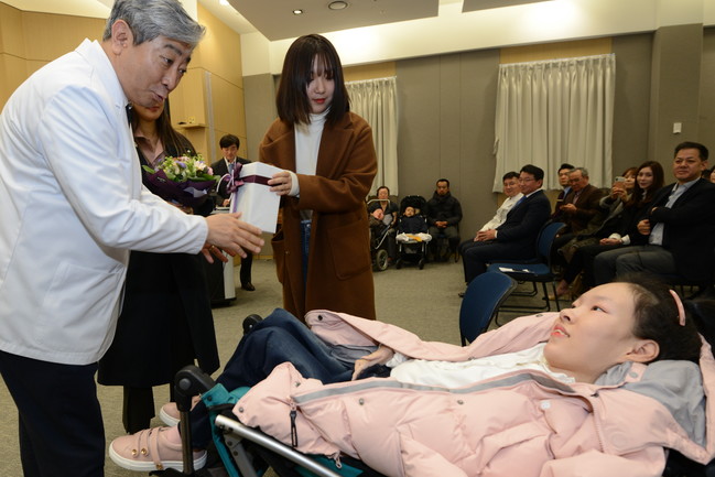 연세대학교 강남세브란스병원 호흡재활센터(소장 강성웅)는 21일 병원 3층 중강당에서 사지마비와 호흡장애를 극복하고 대학교 입학과 졸업을 맞은 신경근육병 환자들을 축하하기 위한「한국의 호킹들, 축하합니다!」행사를 가졌다.