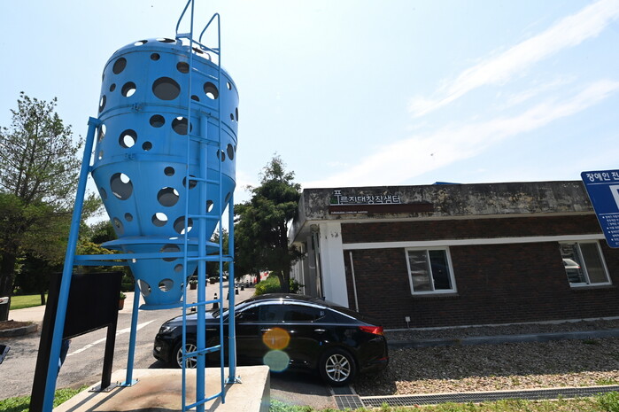 사진/수원시 권선구 수원탑동시민농장 입구에 위치한 푸른지대창작샘터 건물 외부 전경.(사진제공=수원시)