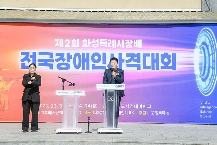 배정수 화성특례시의회 의장은 이날 축사를 통해 “스포츠는 몸과 마음을 단련하는 것을 넘어, 사람과 사람 사이를 잇는 위대한 힘”이라며 “화성특례시의회는 장애인과 함께 어울리며 살아가는 도시, 모두가 동등하게 스포츠의 기쁨을 누릴 수 있는 도시를 만들기 위해 앞장서겠다”라고 밝혔다.