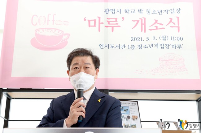 3일 열린 카페 마루의 개소식에는 박승원 광명시장, 시의원, 시민 등 코로나19 예방을 위해 최소한의 인원만 참석해 청소년 작업장의 개소를 축하했다.