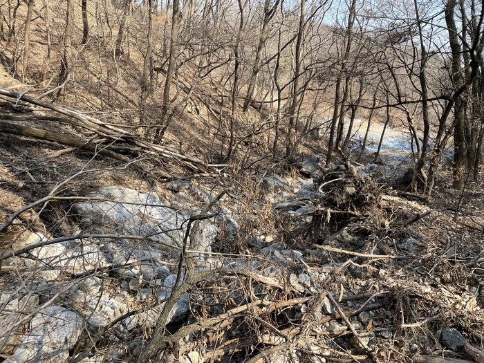 구는 이번 공사에 2억원을 투입해 서봉사지터 인근 고사목 142주를 제거하고 등산로 주변 경사면을 보강했다. 이곳엔 널브러진 나뭇가지가 경관을 해칠 뿐 아니라 물길을 막아 등산로 비탈면을 무너뜨리는 2차 피해의 우려가 컸다.