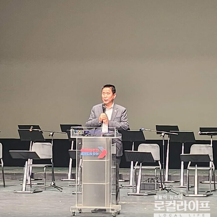| ▲ 성길용 오산시의회 의장이 ‘2023년 주민자치센터 우수동아리 발표회’에 참석해 인사말을 하고 있다. (사진출처=성길용 페이스북) |