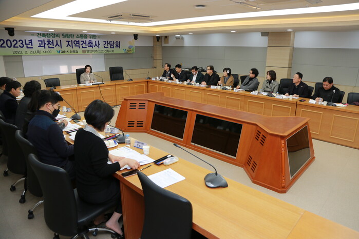 과천시는 23일 시청 상황실에서 건축 행정의 효율성 및 신뢰도 향상을 위한 방안을 모색하기 위해 지역 건축사를 대상으로 간담회를 개최했다.
