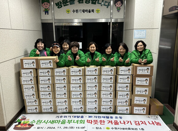 이영희 수원시새마을부녀회장은 “헌옷 모으기 운동으로 환경 보호도 하고, 지역사회의 어려운 이웃을 도울 수 있어 보람을 느낀다”며 “김장 나눔이 이웃들에게 따뜻한 위로와 작은 행복이 되길 바란다”라고 말했다.