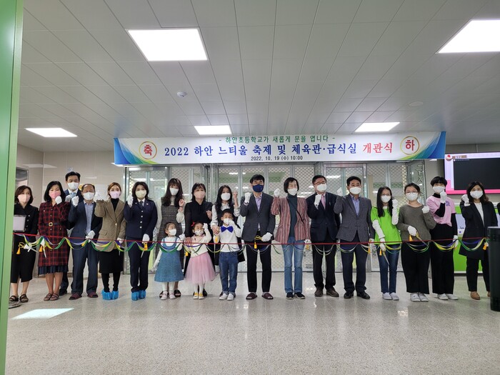 사진/광명시에서 학생들에게 쾌적한 교육환경을 제공하기 위해 지원한 하안초등학교와 하안북초등학교 다목적체육관이 19일 개관했다(하안초개관식)(사진제공=광명시)