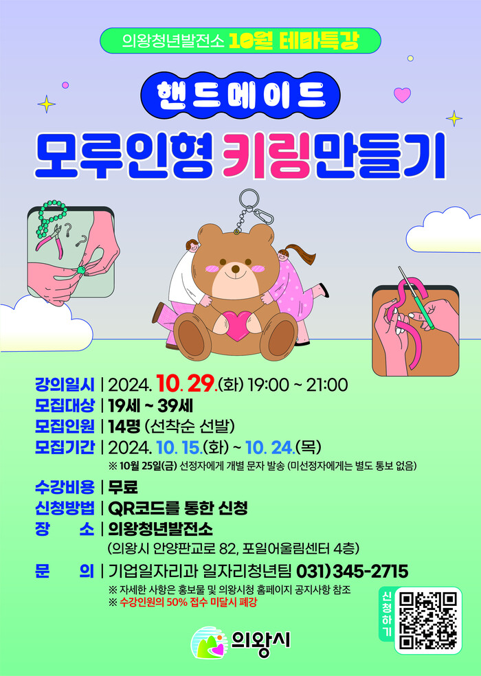의왕청년발전소에서 10월 테마특강 ‘핸드메이드 모루인형 키링만들기’수강생을 모집한다.