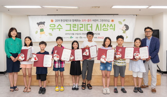 한국 코카-콜라와 환경재단은 지난 24일 오후 서울 중구 환경재단에서 ‘2019 코카-콜라 어린이 그린리더십’ 시상식을 개최했다.