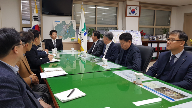 [과천=로컬라이프] 송준형 기자 = 김종천 과천시장은 26일 시청 집무실에서 대우건설 백정완 주택사업본부장을 만나 과천지식정보타운 S6블록의 조속 분양을 요청했다.