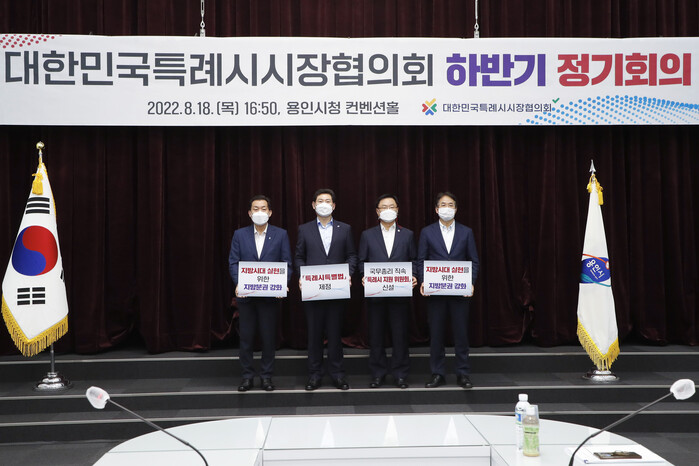 18일 오후, 용인시청 컨벤션홀에서 4개 특례시 시장으로 구성된 대한민국특례시시장협의회(대표회장 이상일 용인특례시장, 이하 협의회)는 「2022 하반기 정기회의」를 개최했다.
