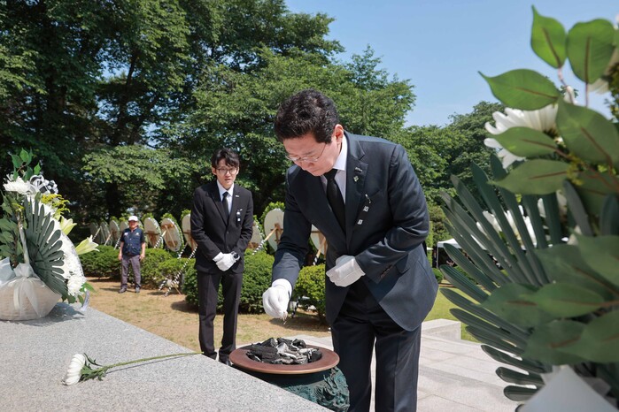 이상일 시장은 ”우리가 매년 추념식을 하는 이유는 이 나라를 지켜주신 순국선열과 호국영령의 고귀한 희생정신을 본받고 그 희생이 헛되지 않도록 다짐하기 위한 것“이라며 ”자유와 평화는 그냥 주어지는 것이 아니라 우리가 싸우고 지키면서 만들어 가는 것이다. 나라를 위해 희생하신 분들의 삶에서 교훈을 얻어 우리 스스로 마음가짐을 단단히 하고 안보태세를 강화하자“고 강조했다.