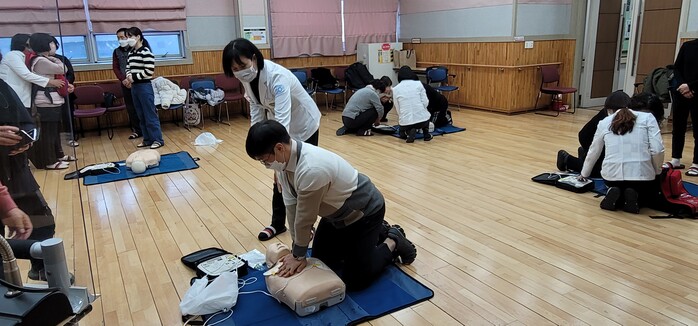 이날 교육은 김용원 경기도의료원 수원병원 응급의학과 전문의의 이론 강의, 실습으로 진행됐다.