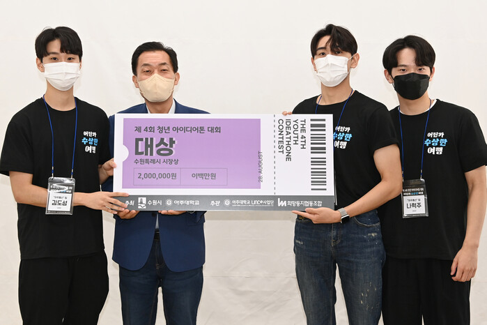 수원시가 주최하고 아주대 LINC3.0 사업단·희망둥지협동조합이 주관한 ‘제4회 청년아이디어톤대회’에서 ‘아주풍선’팀이 제안한 아이디어 ‘트레베뉴’가 대상을 차지했다.
