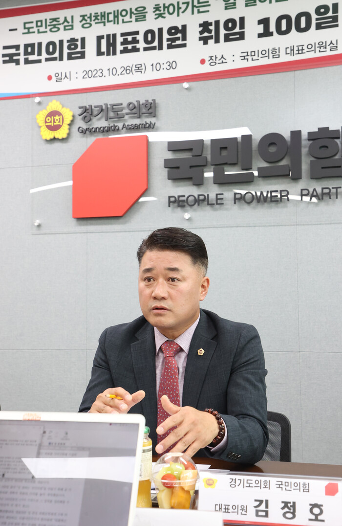 □ 김정호 대표의원은 제371회 임시회 제1차 본회의에서 대표연설을 통해 ‘반대만 하고 있는 경기도’에 각성의 시간이 필요함을 지적하였다. 이는 김동연 지사의 민선8기 1년에 대해 정부 정책 기조와는 반대 방향으로 세워지는 경기도의 정책을 강도 높은 수준에서 비판한 것이었다.