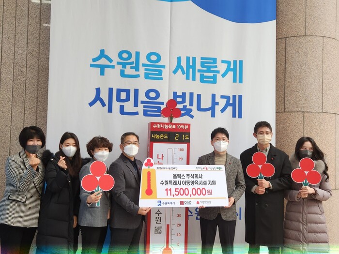 수원시 관내 기업인 올릭스가 “아동 양육시설에 전달해 달라”며 수원시에 성금 1150만 원을 기부했다.
