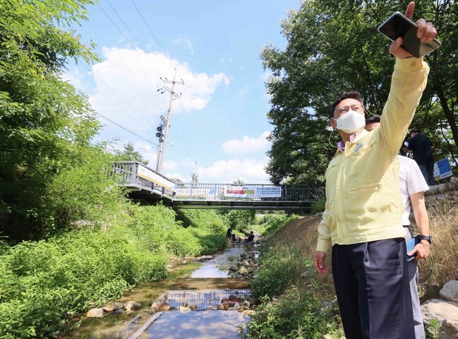 오후석 제1부시장과 김정원 수지구청장을 비롯한 관계자들은 이날 계곡 주변을 찾은 시민들의 마스크 착용 여부와 함께 장투리천 내 불법 시설물 설치 여부도 꼼꼼히 살폈다.