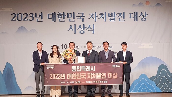 용인특례시(시장 이상일)가 5일 서울 용산구 백범김구기념관 컨벤션홀에서 행정안전부 산하 (사)한국자치발전연구원이 주관하는 ‘2023년 대한민국 자치발전 대상’ 기초부문 대상을 받았다.