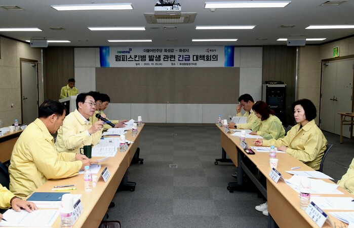 25일, 송옥주 지역위원장과 정명근 화성시장을 비롯한 도의원, 시의원, 그리고 관계 공무원은 화성종합경기타운에서 럼피스킨병 확산에 따른 긴급 대책회의를 진행하였다.